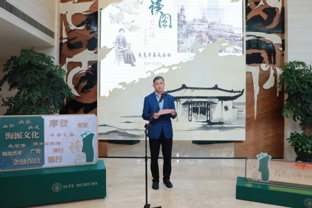 上海财经大学副校长李增泉讲话并宣布展览开幕。他表示展览是博物馆最重要的文化传播活动和教育方式,作为学校的文化名片和文化育人的场所,我校博物馆多年来一直积极地利用藏品资源策划举办多个特色鲜明的专题展览,多维度地向大家传达文化信息,通过文物讲好文化的故事。作为中国第一所商科大学,上海财经大学根植江南大地,与上海的发展紧密相连,学校一直积极推动将上海的红色文化、江南文化、海派文化资源与自身文化资源相结合,并转化为高质量的有特色的育人资源,本次特展正是这样一次主动探索和有益尝试。“月份牌”以一种特有的形式和内容,记录了上海商业和文化的发展与融合,呈现和展示了独特的上海文化,希望展览对大家了解上海、了解上财以及了解中华优秀传统文化有所启发和帮助。