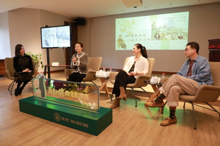 在随后举行的文化沙龙环节,上海财经大学金融学院粟芳教授、上海纽约大学世界语言项目高级讲师顾蓓蕾老师、上海大学博物馆陈列设计主创于群老师,以“海上玉兰绽”为题,围绕“月份牌中的上海城市印象”,“从月份牌到城市风貌”分享了各自记忆、感受和对月份牌的专业视角解读;聚焦上海建设“五个中心”的重要使命,三位嘉宾也为在座同学们的未来发展提出了指导建议。