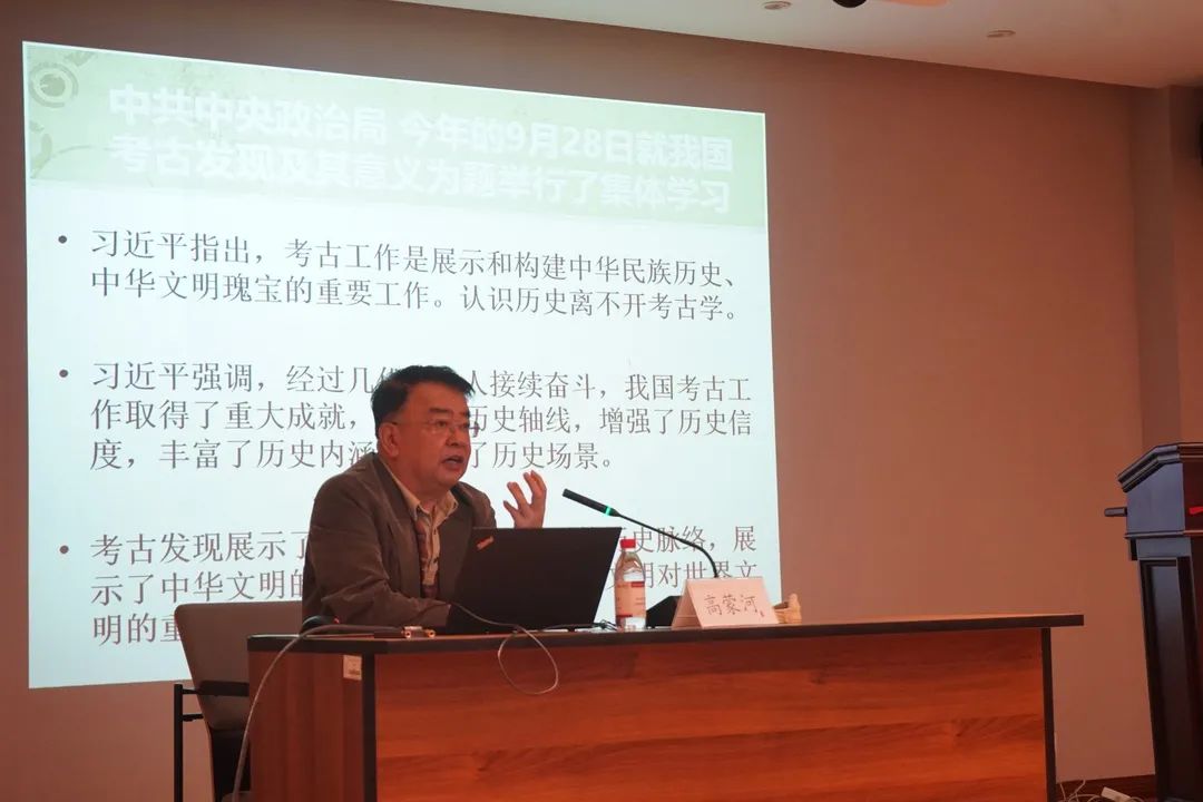 高蒙河教授以9月28日中共中央政治局集体学习为切入点,指出认识历史离不开考古学,无数的考古发现震撼、冲击了我们对历史的认识,也一定程度上改变甚至颠覆了我们的历史常识与思想观念。他引述习近平总书记的讲话:我国考古工作“延伸了历史轴线,增强了历史信度,丰富了历史内涵,活化了历史场景。”