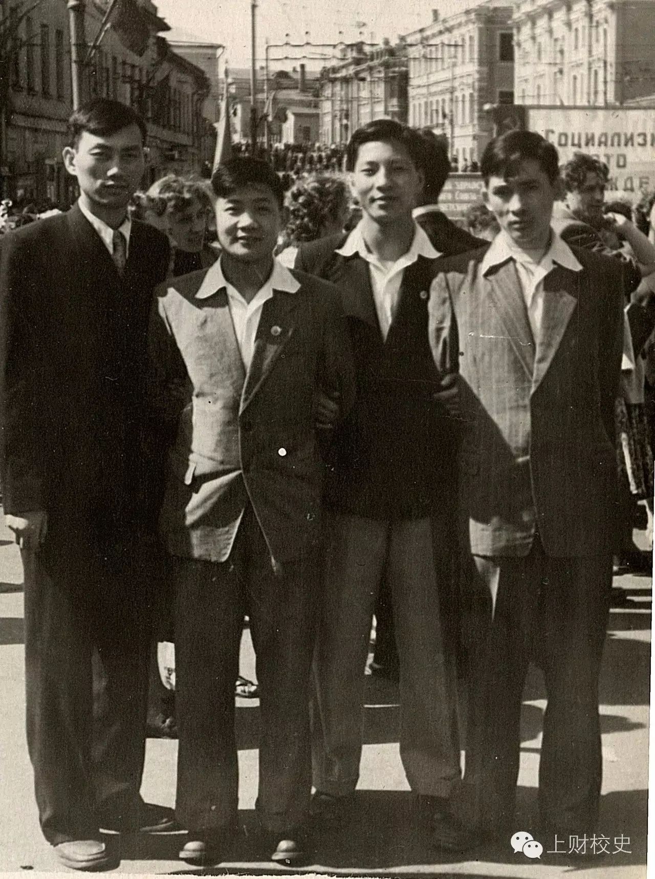1956年,留苏学生郑家亨(左三)、杨树庄(左一)在苏联莫斯科求学期间留影