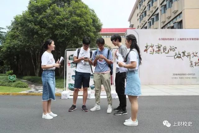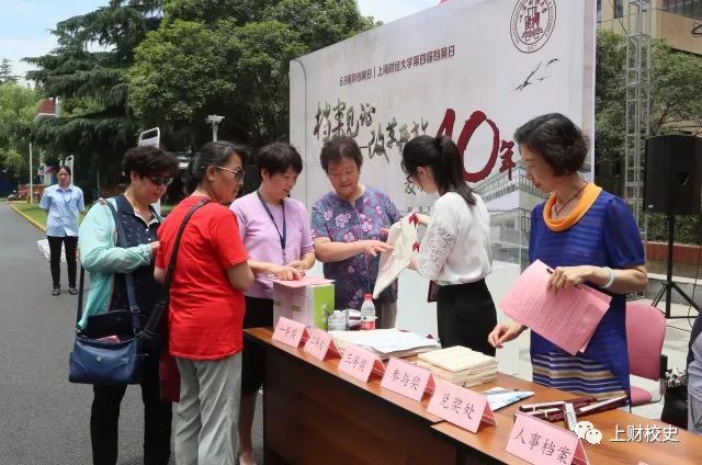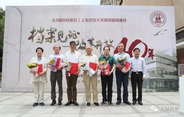6月8日(周五)中午11:30,档案馆(校史馆、博物馆)在国定路校区绿叶步行街举行2018年“上海财经大学第四届档案日”开幕式。本届档案日以“档案见证——改革开放40年·复校40年”为主题,通过丰富多样的活动方式,让档案见证40年伟大历程。副校长陈信元教授,原党委副书记季德元老师,原副校长陈和本老师,复校40年史料捐赠人张次博老师、戴国强老师、刘志远老师、尤家荣老师、王玲老师、陈正良老师,离退休老同志代表,学校相关部门负责人,以及来到现场的老师和同学共约130余人参加了活动。