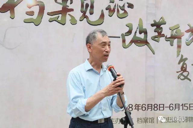 副校长陈信元教授作了重要讲话。他表示,6位老师捐赠的珍贵史料,再现了学校复校初期艰苦的环境和广大师生的拼搏进取,反映了40年来学校的改革探索和取得的巨大成就,同时也是改革开放40年来国家发展和社会变迁的见证,真实的体现了档案的价值和力量。他希望广大师生能够更加珍视我们的档案和其承载的学校历史,更加注重传承和弘扬学校的优良历史传统,更加善于从历史的宝库中去汲取智慧和力量;要铭记学校创校先贤的办学初心,感恩复校初期先辈们的艰苦创业,牢记使命、不懈奋斗,为学校新百年的新梦想和中华民族的伟大复兴做出应有的贡献。最后,他宣布上海财经大学第四届档案日正式开幕,并预祝本届档案日系列活动取得圆满成功!