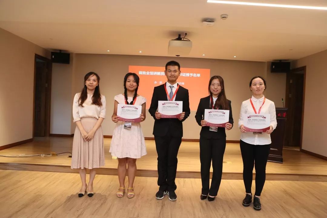 总结及表彰之后,喻世红馆长为讲解队首批11位全馆讲解员颁发了2018-2019学年聘任证书及工作证,并授予终身讲解员编号,他们分别是:001号讲解员余音、002号讲解员匡晨、003号讲解员陈丹青、004号讲解员李炎林、005号讲解员骆文佳、006号讲解员宁晓丹、007号讲解员赵妍、008号讲解员崔良敬、009号讲解员陈蕴琦、010号讲解员宋雪梅、011号讲解员顾雅琪。