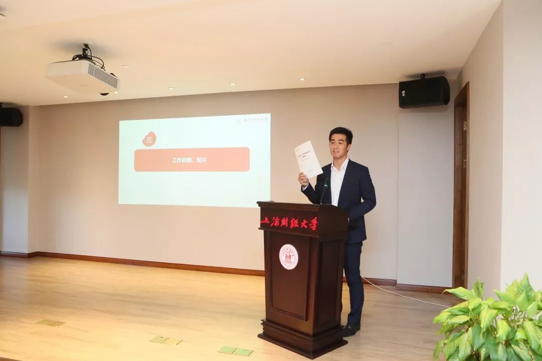 在讲解员代表发言环节,分别由余音校友、馆长奖获得者匡晨同学和新进讲解员代表龙思宇同学发言。余音校友对于能通过上海市高校博物馆育人联盟与母校的博物馆结缘表示非常激动,对被聘为001号讲解员表示很荣幸,希望能尽快掌握讲解词,成为真正的全馆讲解员。她现场邀请大家今后去上海广播电台参观,并希望自己的栏目能与两馆和讲解队展开深入的合作。匡晨同学在发言中表达了对获得馆长奖的激动之情,并通过生动的事例回顾了自己以及讲解队从开始走到现在所付出的艰辛与努力。龙思宇同学表示自己深受鼓舞并对于讲解员这一身份有了更加强烈的期待与憧憬,随后从why和how两个方面谈了自己为什么要加入讲解队以及今后要怎么做。
