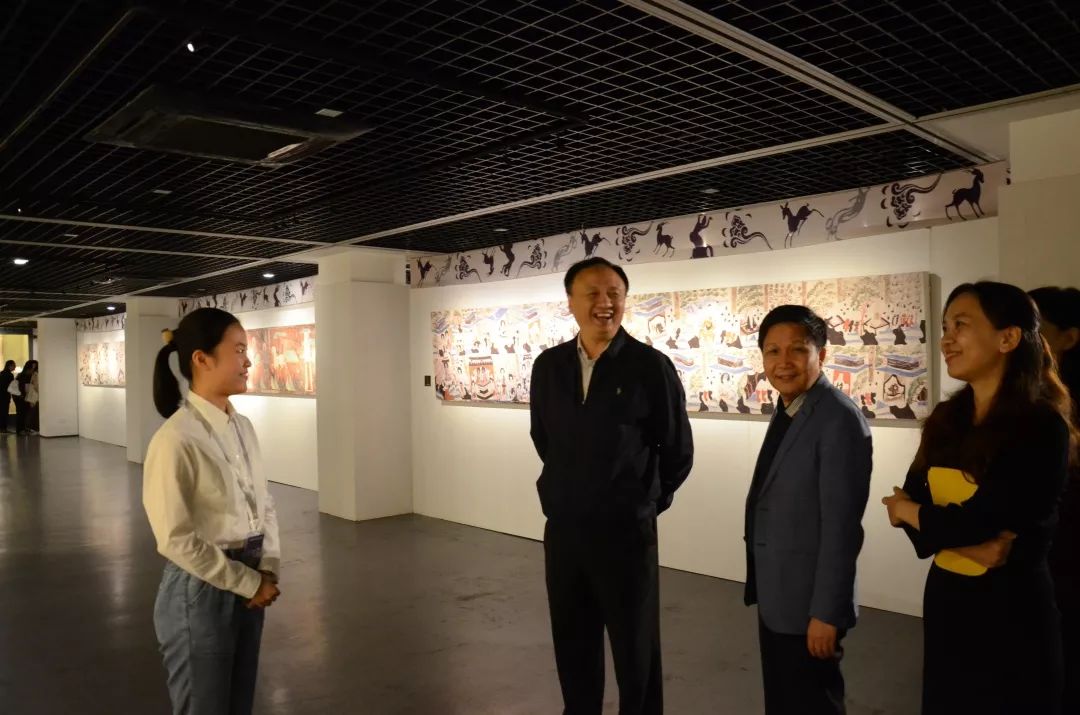 许书记一行首先参观了校史馆和博物馆。在校史馆和校友馆,喻世红馆长向许书记介绍了学校自南京高等师范学校商业专修科设立以来至今百余年的发展历史,对学校各历史时期的沿革变迁、系科设置、教育教学、师资力量、知名校友等做了概要的讲解。许书记不时驻足观看,仔细了解相关情况。在博物馆,由学生讲解员向许书记依次讲解介绍了中国高等商学教育馆、保险馆、税票馆、货币馆、算具馆。在临展馆,许书记还参观了敦煌壁画艺术精品高校公益巡展。许书记对学生讲解员的精彩讲解给予了充分肯定。