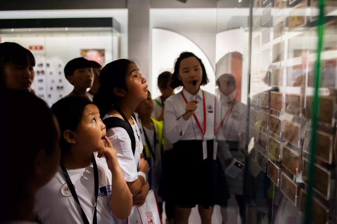7月9日,育衡宣讲队006号讲解员宁晓丹为贵州省毕节市赫章县双坪彝族苗族乡初级中学的25名学生讲解货币馆。
