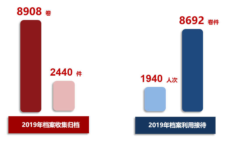 2019年,完成8908卷,2440件档案的收集归档工作。综合档案馆藏总量达156131卷、16520件。全年共接待档案利用1940人次,利用档案8692卷件