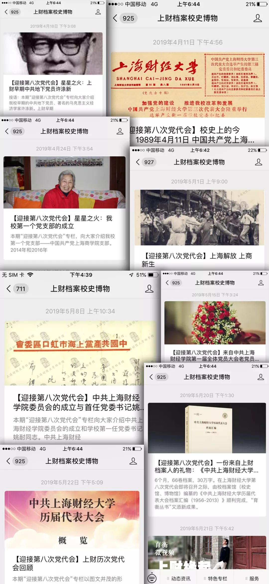 服务第八次党代会,完成了《中共上海财经大学历届代表大会档案汇编》《历届代表大会概览》等30余万字的编研成果,刊发《上财记忆》“党代会特刊”,并举办了历次党代会回顾展、开设了“迎接第八次党代会”微信专栏。