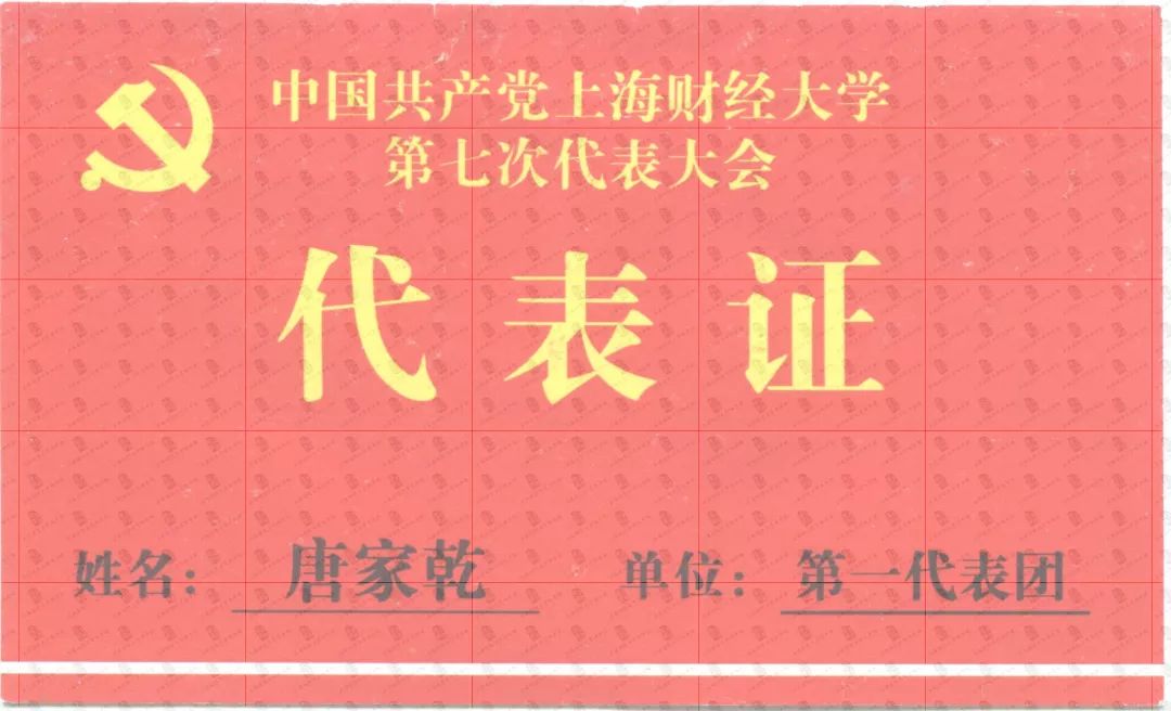 会计学院原党委书记唐家乾老师捐赠了中国共产党上海财经大学第七次代表大会代表证。