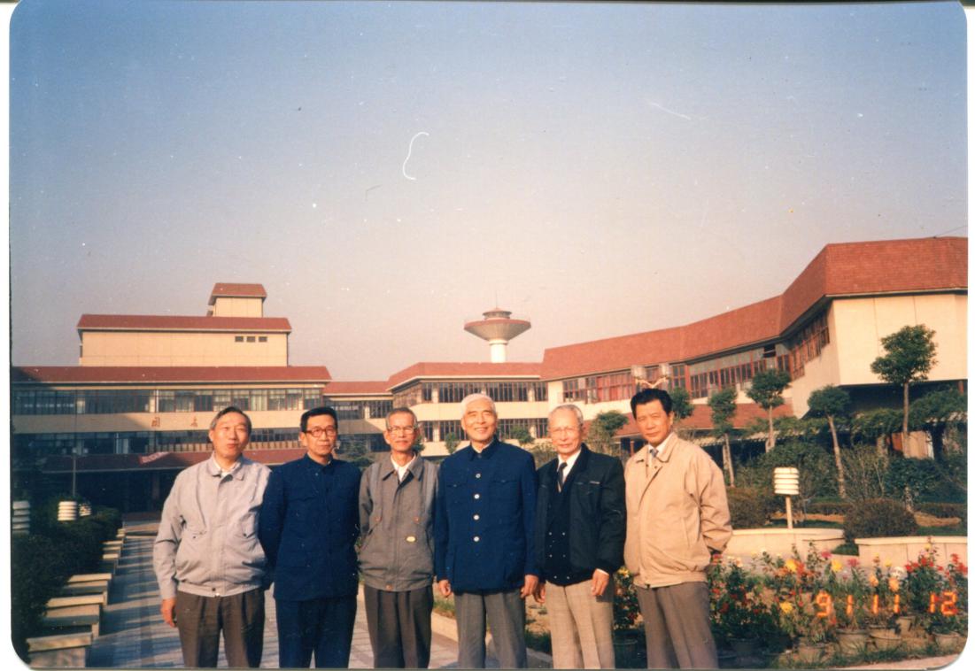 1991年11月12日,原国立上海商学院地下党成员和进步同学在上财国定路校区团聚(从左至右:叶孝理、徐英俊、邵祥能、杨毅芳、彭辉芳、何克明)