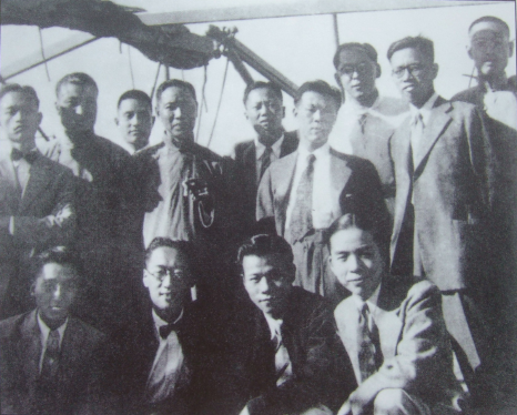 中央信托局选聘的十三名业务骨干在昆明榆园西楼合影(前排左起:赵镇圭、唐雄俊、沈尔元、包玉刚。后排左起:程恩树、沈雍康、徐曾渭、张仲良、茅子嘉、童肇麟、周志斌、林震峰、胡肇忠,1939年)