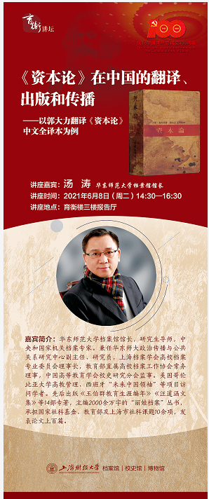 讲座主题:《资本论》在中国的翻译、出版和传播——以郭大力翻译《资本论》中文全译本为例