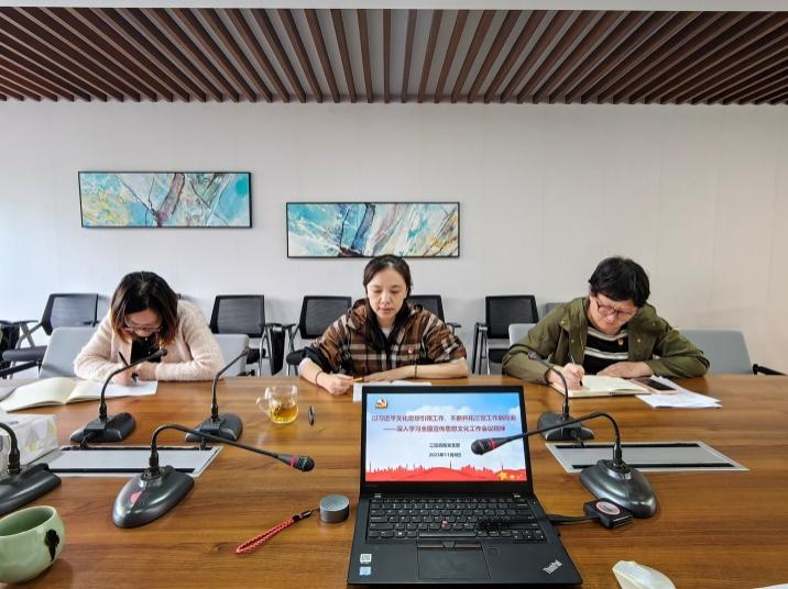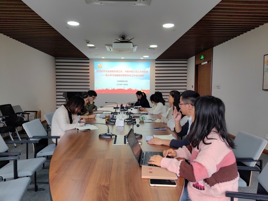 喻世红书记首先向支部全体党员传达了全国宣传思想文化工作会议精神。全国宣传思想文化工作会议传达了习近平总书记对宣传思想文化工作的重要指示,并首次提出习近平文化思想。习近平总书记在新时代文化建设方面的新思想新观点新论断,内涵十分丰富、论述极为深刻,是新时代党领导文化建设实践经验的理论总结,丰富和发展了马克思主义文化理论,构成了习近平新时代中国特色社会主义思想的文化篇,形成了习近平文化思想。习近平文化思想精辟深邃,视野宏大,既有理论观点上的创新和突破,又有工作布局上的部署要求,明体达用、体用贯通,为做好新时代新征程宣传思想文化工作、担负起新的文化使命提供了强大思想武器和科学行动指南。