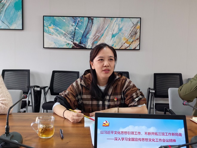 为深入学习全国宣传思想文化工作会议精神,三馆直属党支部于118日开展主题党日活动,本次主题党日围绕“以习近平文化思想为引领,不断开拓三馆工作新局面”开展了深入地学习与交流。主题党日由三馆直属党支部书记喻世红主持,支部全体党员参加。