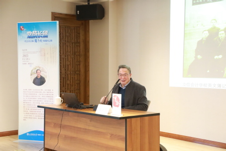 11月28日下午,第37期育衡讲坛在育衡楼三楼报告厅举行。本期讲坛邀请到上海立信会计金融学院文博中心国际会计史研究中心主任、中国会计博物馆原馆长宋小明教授,为大家带来“棠荫长留:一代会计宗师潘序伦的报国之路”的专题讲座,分享了潘序伦先生为中国会计事业奋斗终身的人生历程。讲座由档案馆(校史馆)/博物馆副馆长王雅静主持。