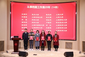 在年会上,举行了学会征文颁奖仪式、档案学术活动先进集体和先进个人颁奖仪式。上海高校档案专业委员会副理事长黄岸青为“学术论文奖”获得者颁奖,共颁出学术征文一等奖9篇、二等奖14篇、三等奖21篇;上海市档案学会秘书长居继红为复旦大学等19个单位颁发“档案学术活动先进集体”荣誉证书;上海市高校档案专业委员会副理事长王惠文为陈超群等23人颁发“档案学术活动先进个人”荣誉证书;上海市高校档案专业委员会副理事长邹晓磊为王建平等14人颁发“从事档案工作满20年”荣誉证书;上海高校档案专业委员会副秘书长徐松如为王亚达等3名同志颁发“从事档案工作满30年”荣誉证书。