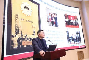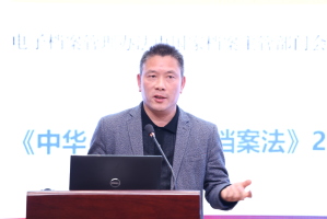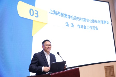 上海高校档案专业委员会理事长汤涛做《坚守文化自信 助力上海高校档案事业现代化》年会工作报告。