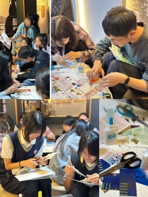 此次体验工坊,也是控江中学文创导航课高中生们的一次博物馆实践课。同学们在博物馆中跟随育衡宣讲队队员的引导参观了商学博物馆,了解文物的故事,与上财学子一起创作拼贴诗,用画面中的文字元素表达对生活中美的独特感受。控江中学高二年级的贺同学说“在大学博物馆里,和哥哥姐姐们安静地一起完成作品,这样的体验很新奇。既收获了春天的诗意,也留下了美好的回忆。”