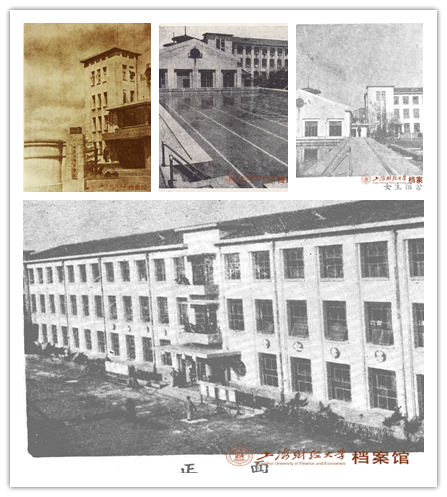 国立上海商学院校门、游泳池、女生宿舍和教学楼(1947年)