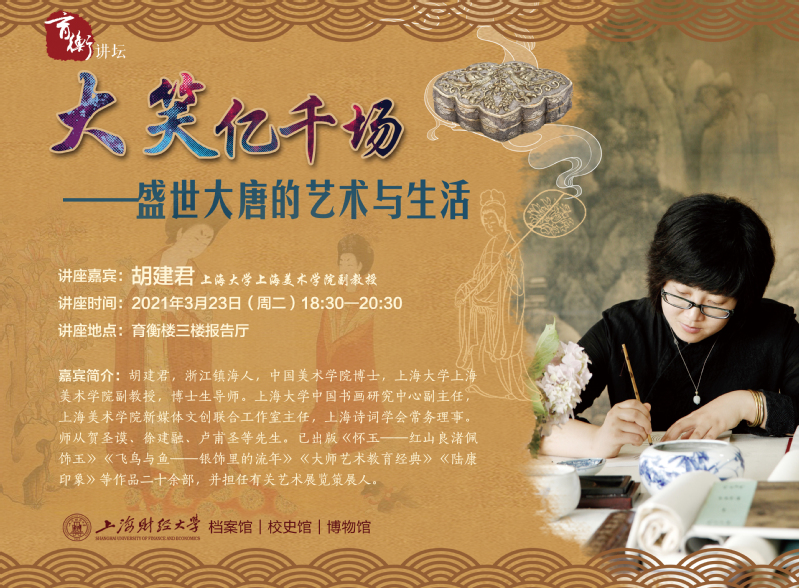 胡建君老师通过讲述唐代的书画、妆容、服饰、器物、香具、纸笺等内容,重现大唐盛世的生活美学,带领我们一起感受洒脱自在、多情烂漫的唐风华韵。