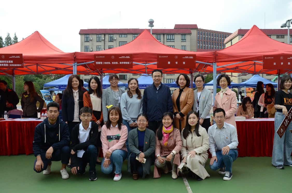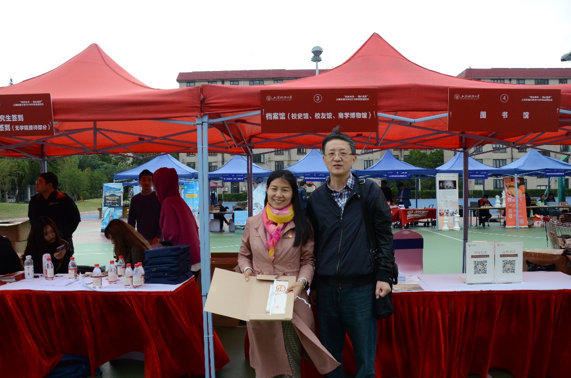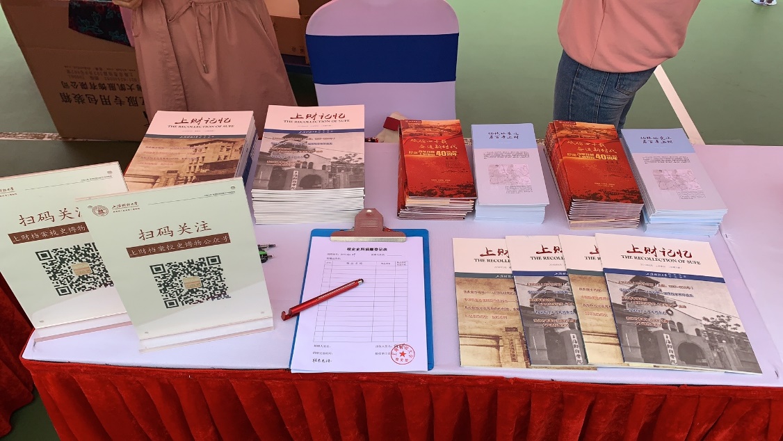 早晨7点50分,支部党员志愿者已将校史馆编印的《忆校址变迁看百年上财》、《砥砺四十载 奋进新时代——纪念改革开放上财复校40周年展》校史宣传册和《上财记忆》期刊等摆放在了体育馆外的档案馆(校史馆、博物馆)接待台前。