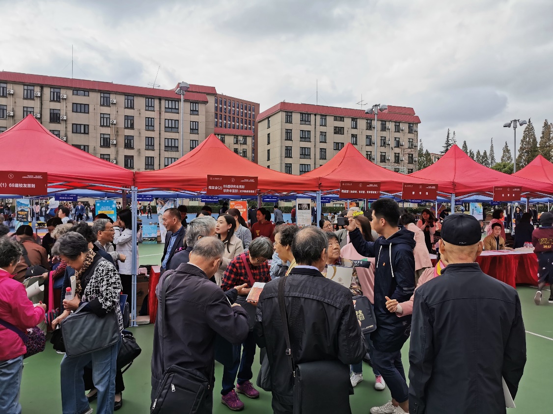 随着校友的逐渐到来,广场上聚集的校友越来越多,党员们有的为校友提供指路咨询服务,有的为校友分发校史资料,有的负责接待校友捐赠史料。大家共向老校友们发放宣传册300多册,让校友们重温了过去,也了解学校的现在,受到校友们尤其是1969届校友的热烈欢迎。