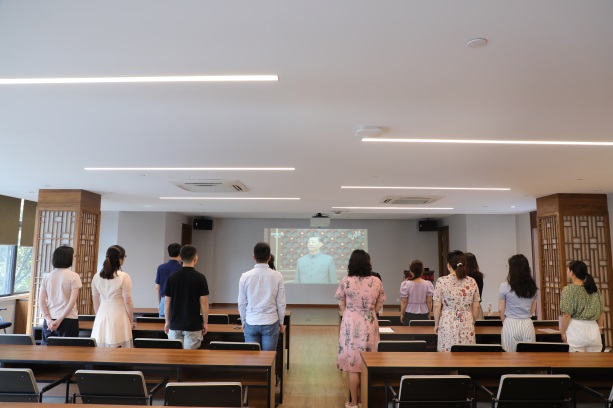 7月1日上午8点,庆祝中国共产党成立100周年大会在北京天安门广场隆重举行。三馆全体党员和教职工在三楼报告厅集中收看庆祝大会现场直播,认真聆听学习习近平总书记重要讲话精神。