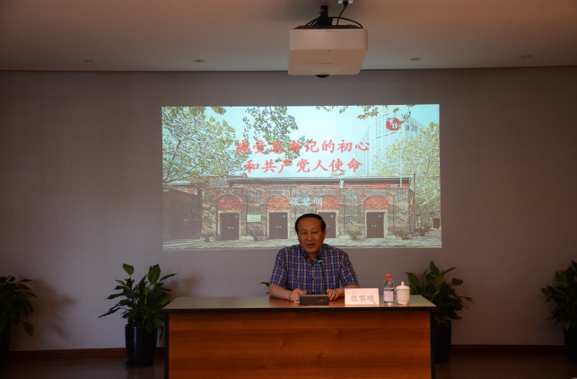 首先张黎明馆长为我们作题为《感受总书记的初心和共产党人使命》的报告。2017年10月31日,在党的十九大闭幕仅一周,中共中央总书记、国家主席、中央军委主席习近平和李克强、栗战书、汪洋、王沪宁、赵乐际、韩正等中央政治局常委集体瞻仰中共一大会址,并重温入党誓词。作为这一重要历史时刻的亲历者和见证者,张馆长回顾了他承担这一光荣而神圣任务的始末,与大家分享了在陪同过程中难忘而珍贵的片段,以及他所真切感受到的习总书记的初心和共产党人的使命。从“这里是中国共产党的‘产房’”到“这里是共产党人的精神家园”、 从“我虽然不经常回来,但是我的心早就留在了这里”到“我们走得再远都不能忘记来时的路”;从步行来到中共一大会址纪念馆到铿锵有力的宣誓声响彻大厅,张馆长生动而充满感情的讲述,让大家深受感染和教育。