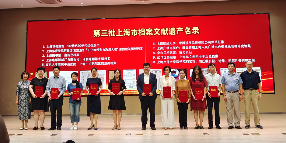 9月26日上午,上海市第三批档案文献遗产和优秀档案文化传播项目在上海市档案馆浦东新馆举办的新闻发布暨颁证(奖)会上揭晓。我校档案馆(校史馆、博物馆)申报的“中国近代民族保险公司保单汇集”项目成功入选上海市档案文献遗产名录。