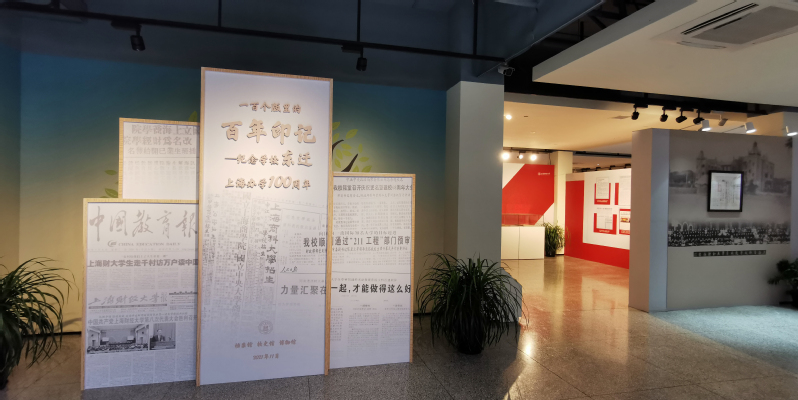 《一百个版里的百年印记》是为纪念学校东迁上海100周年暨上海商科大学创立100周年而举办的特展。展览以报刊为主题,从《申报》《文汇报》《人民日报》《上海财经大学报》等报刊中,精选出100篇关于学校的报道,以“报刊中的上海财经大学”为视角,呈现学校东迁上海一百年来的发展历程和卓越成就。
