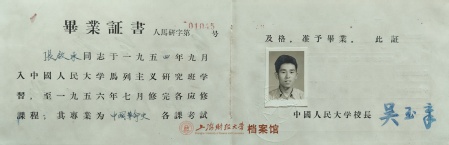 1956年,张启承在中国人民大学马列主义研究班的毕业证书