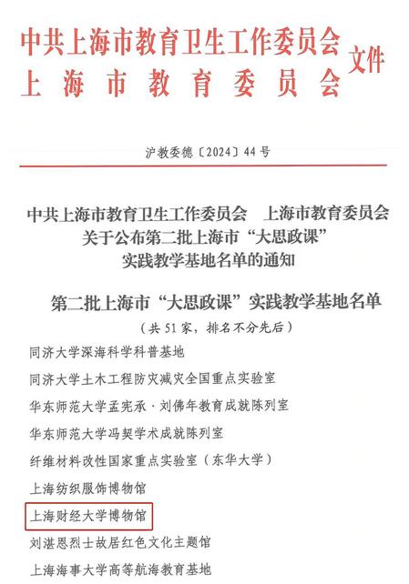 近日,中共上海市教育卫生工作委员会、上海市教育委员会公布第二批上海市“大思政课”实践教学基地名单,学校博物馆获评入选。