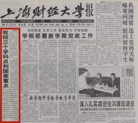 2002年3月12日,《上海财经大学报》第312期报道“我校三个学科点列国家重点”
