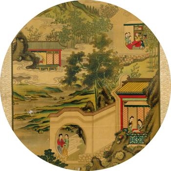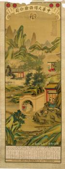 早期月份牌中的女性,无论是历史典故、戏曲人物、民间传说题材,还是初代月份牌画师周慕桥所描绘的仕女,多以闺阁形象示人。她们身着传统的袄裙,遵循着“两侧打褶,而且很长,只允许走路时微微露出一点莲尖” (《西风东渐:衣食住行的近代变迁》)的着装规范。这种服饰不仅限制了女性的行动,也反映出当时社会对女性温顺、内敛的角色期待。在画面中,她们或持棋对弈,或对镜梳妆,生活场景局限于庭院闺房之内,展现出一种封闭、传统的生活状态。这一时期的女性图景,是被传统礼教束缚的,女性在家庭的小圈子里操持家务、研习女红,社会活动参与度极低,她们的价值更多地体现在对家庭的贡献上。