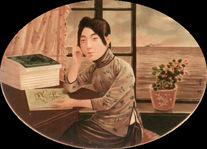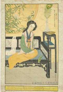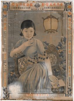 郑曼陀绘“女子读天演论”画稿(网络资源)民国曼陀款安平水火保险股份有限公司月份牌