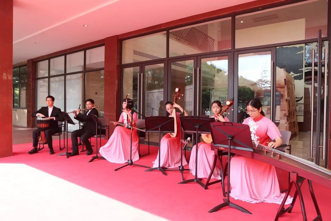 紧接着,由在国内外屡获大奖的上海财经大学民乐团演奏曲目《敦煌》,悠扬的曲调令现场嘉宾和师生仿佛置身于敦煌,徜徉于佛像的凝视和飞天的舞姿之间,将开幕式的氛围带入高潮。