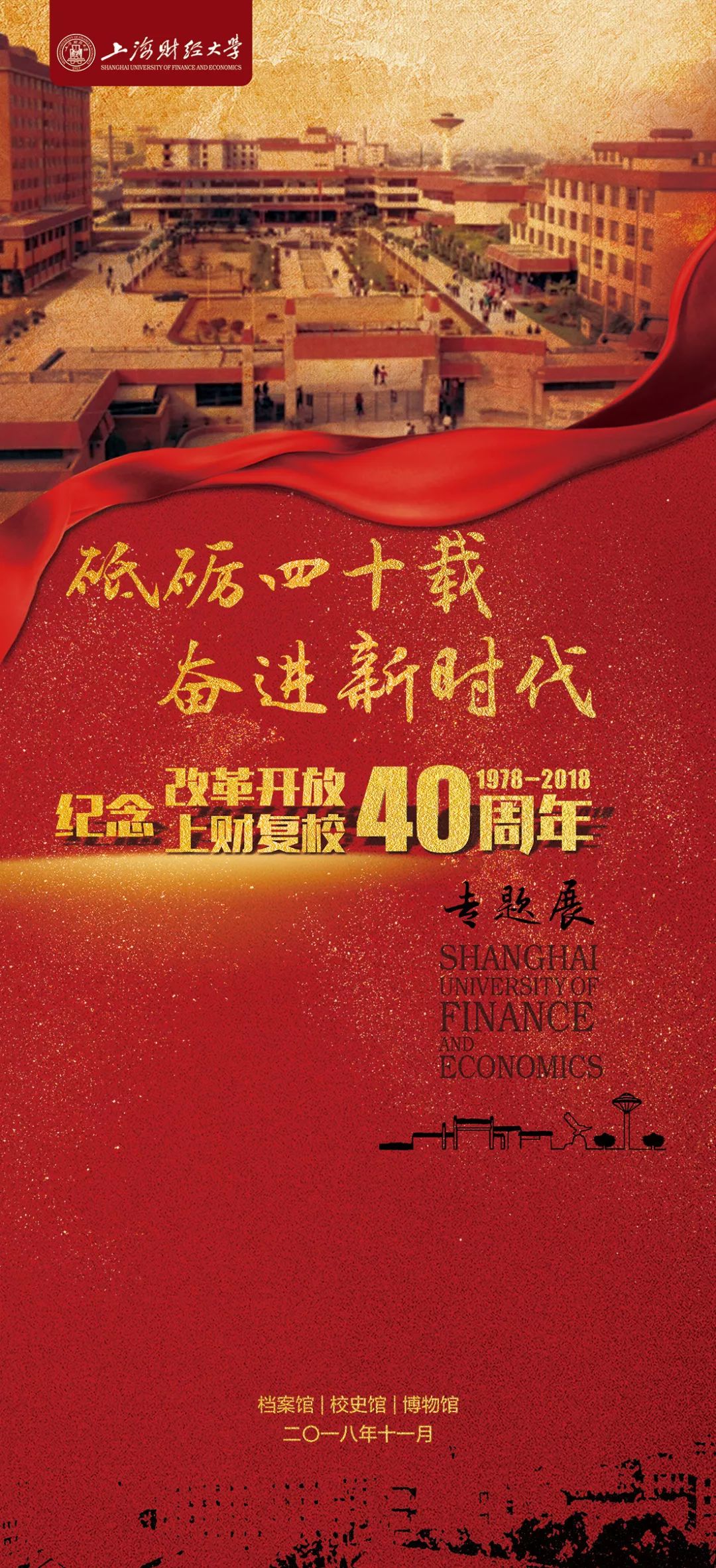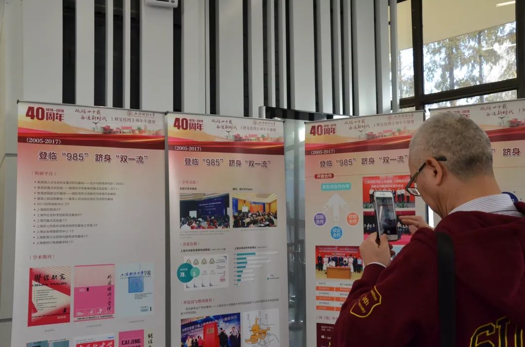 40年砥砺奋进,40年春风化雨。为纪念改革开放40周年和上海财经大学复校40周年,由档案馆(校史馆、博物馆)举办的“砥砺四十载 奋进新时代——纪念改革开放暨上财复校40周年专题展”于1110日在学校艺术中心进行了首展。首展面向参加“SUFE101秩年返校”的广大1988届、1998届、2008届校友,以生动的图文、翔实的史料,让返校校友们充分了解40年来学校发生的变化、取得的成就,增强校友们的荣誉感和归属感。
