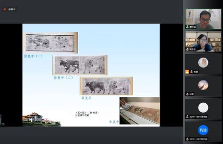 讲座伊始,谢老师为大家简要介绍了故宫博物院藏《五牛图》的修复过程,引出本次讲座的核心内容:书画装裱技艺与纸质文物修复技艺。