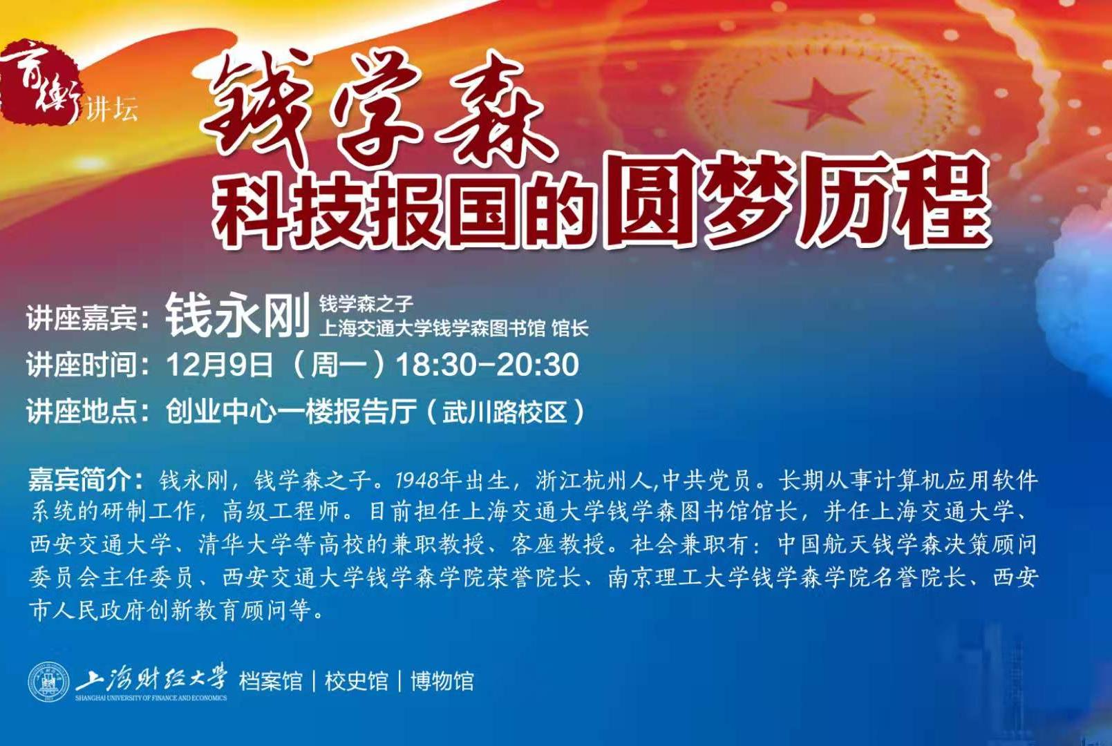 钱学森是享誉海内外的杰出科学家和我国航天事业的奠基人,他的杰出贡献、感人事迹和崇高品格,是我们国家和民族的宝贵精神财富,也是教育和启迪师生的宝贵财富。值此新中国成立70周年之际,为弘扬钱学森爱国主义精神和科学精神,我们荣幸地地邀请到了钱学森先生的儿子——钱永刚馆长与大家分享钱学森科技报国的感人往事和为中华民族伟大复兴而不懈奋斗的拳拳爱国之心。钱永刚馆长以钱学森入读中学以后的五次重要人生选择为切入点展开,通过钱学森在人生几个重要节点的取舍与选择,让我们感受到他那份赤诚的爱国情怀与立志报国的坚定信念。