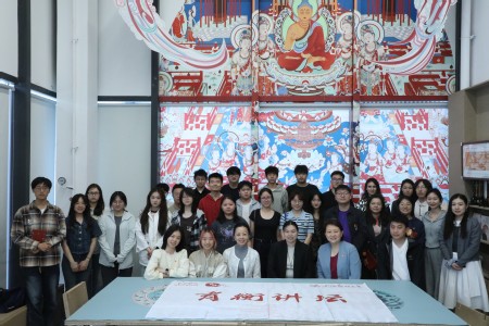 2025年4月22日下午,第43期育衡讲坛带领上财师生走进敦煌当代美术馆,实地感受“申城中的敦煌图景”,邀请敦煌当代美术馆馆长杜晨艳作“敦煌文化的当代转议与艺术评论”主题讲座。国际教育学院“国先生”思政工作室师生代表参加活动。活动由档案馆(校史馆)/博物馆副馆长王雅静主持。