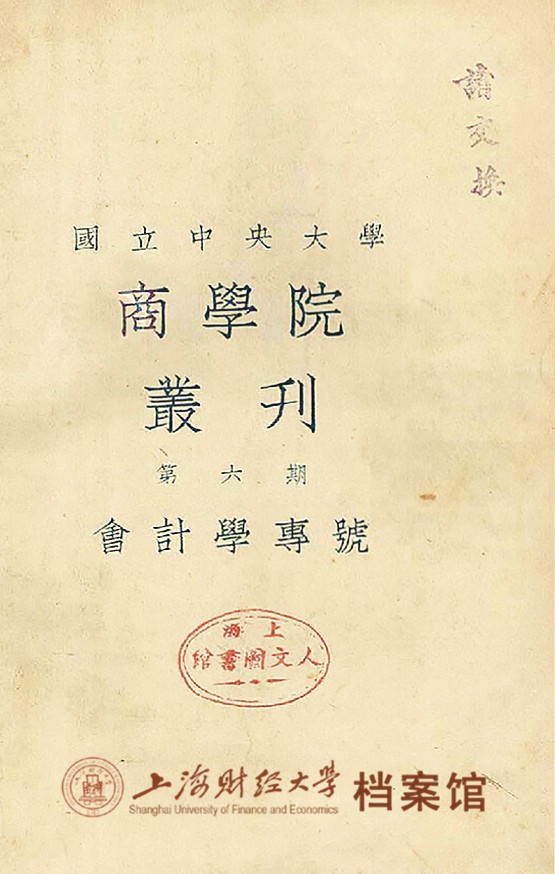 1931年4月,《国立中央大学商学院丛刊第六期会计学专号》