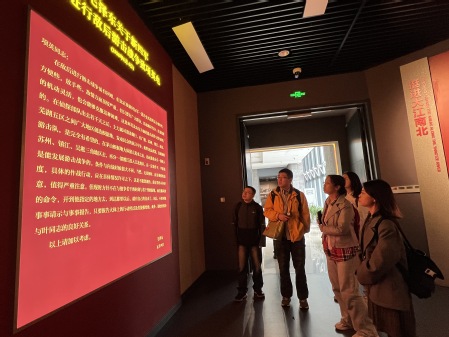 宣讲队员怀着崇敬之心,来到新四军纪念馆。从“民族危急 铁军诞生”出发,透过展馆文物见证他们的热血年华,新四军将士们使用过的枪支弹药、破旧却意义非凡的军装,每一件都承载着一段血与火的故事;详实的史料文献,用文字诉说着战役的激烈与胜利的来之不易。1:1复刻的芦苇荡指挥部里,电报机的滴答声与虚拟投影的作战会议交织;环幕影院中,通过AI修复的珍贵影像带我们穿越到阜宁战役现场——炮弹掀起的烟尘甚至扑上面颊,让大家真切感受到何为“一寸山河一寸血”。