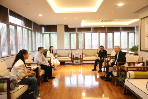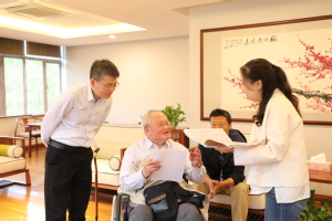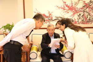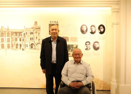 彭瑜、彭飞兄弟二人此次来校,一是为了追寻其父早年在上财求学的足迹。二是参与由彭湖长女彭珮云委托、湖南国际频道策划、潇湘电影集团创制的大型系列人物纪录片《烽火家国——现代企业家银行家彭湖》拍摄。在参观校史馆的过程中,两兄弟在父亲的照片前亲切合影,为我们讲述起彭湖校友对马寅初、杨杏佛等老师的回忆以及与徐柏园、王志莘等校友的交往事迹,为研究我校上海商科大学时期学生的培养和学生生活提供了更多的细节依据。