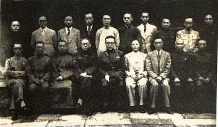 (前排左四为周诒春,左五为吴鼎昌,左六为霍宝树,后排左二为彭湖,左八为何辑伍)