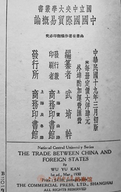 1930年3月商务印书馆出版《中国国际贸易概论》