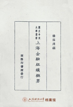 1930年2月商务印书馆出版《上海金融组织概要》