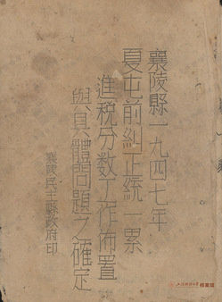《襄陵县一九四七年下屯前纠正统一累进税分数工作布置与具体问题之确定》