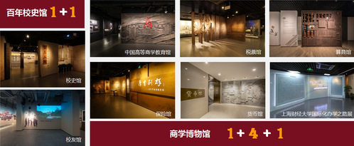 常设展厅:百年校史馆、校友馆、中国高等商学教育馆、保险馆、税票馆、货币馆、算具馆