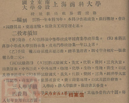 1922年,国立东南大学分设上海商科大学的招生简章中显示,学校设银行理财、会计、工商管理、保险等七系