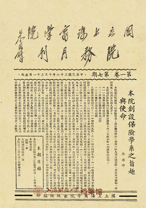 1947年10月,保险学系主任吴道坤发表在《国立上海商学院院务月刊》上的《本院创设保险学系之旨趣与使命》